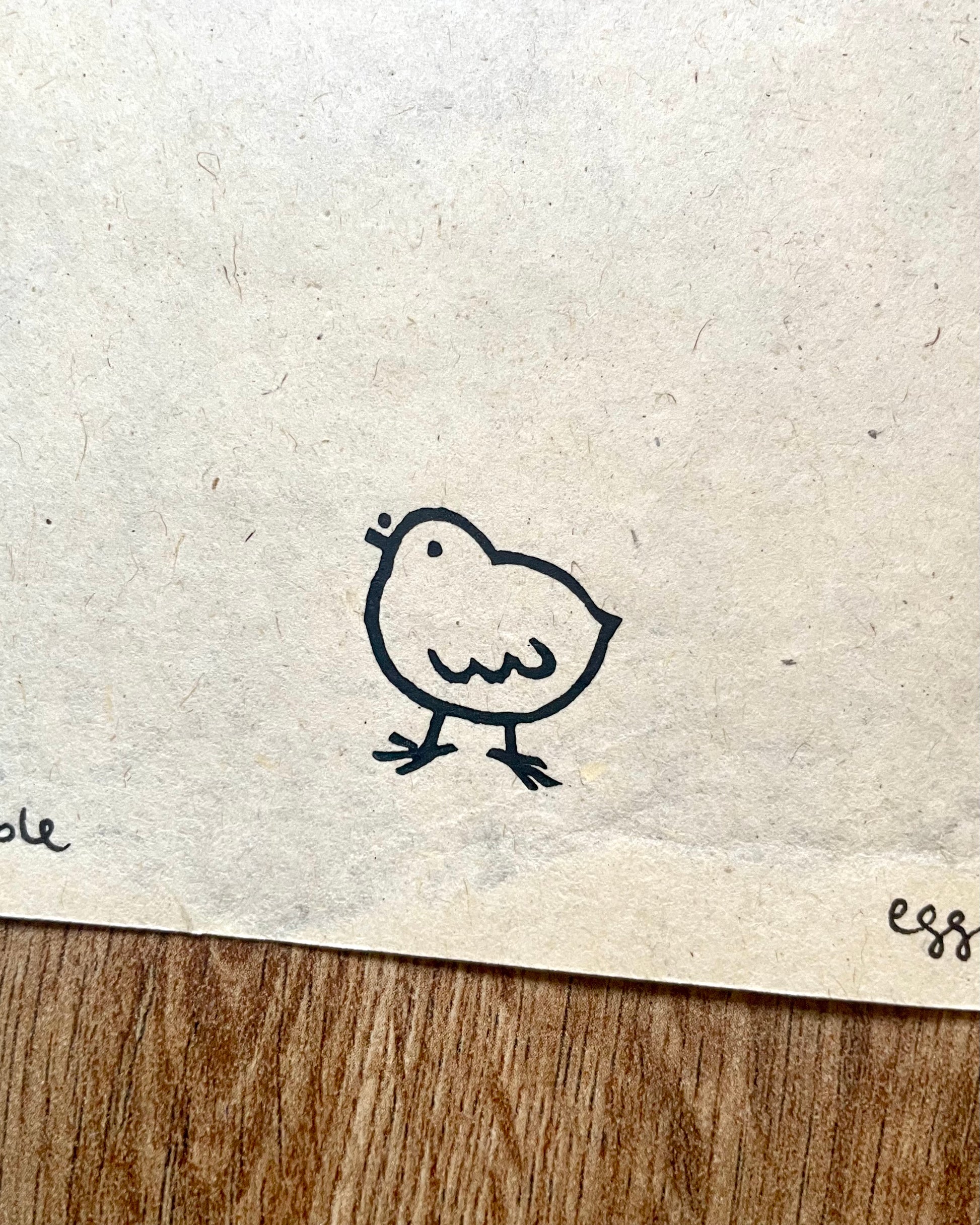 Black Cranfield Caligo relief printing ink on 100gsm off-white handmade Sunn hemp recycled paper.
