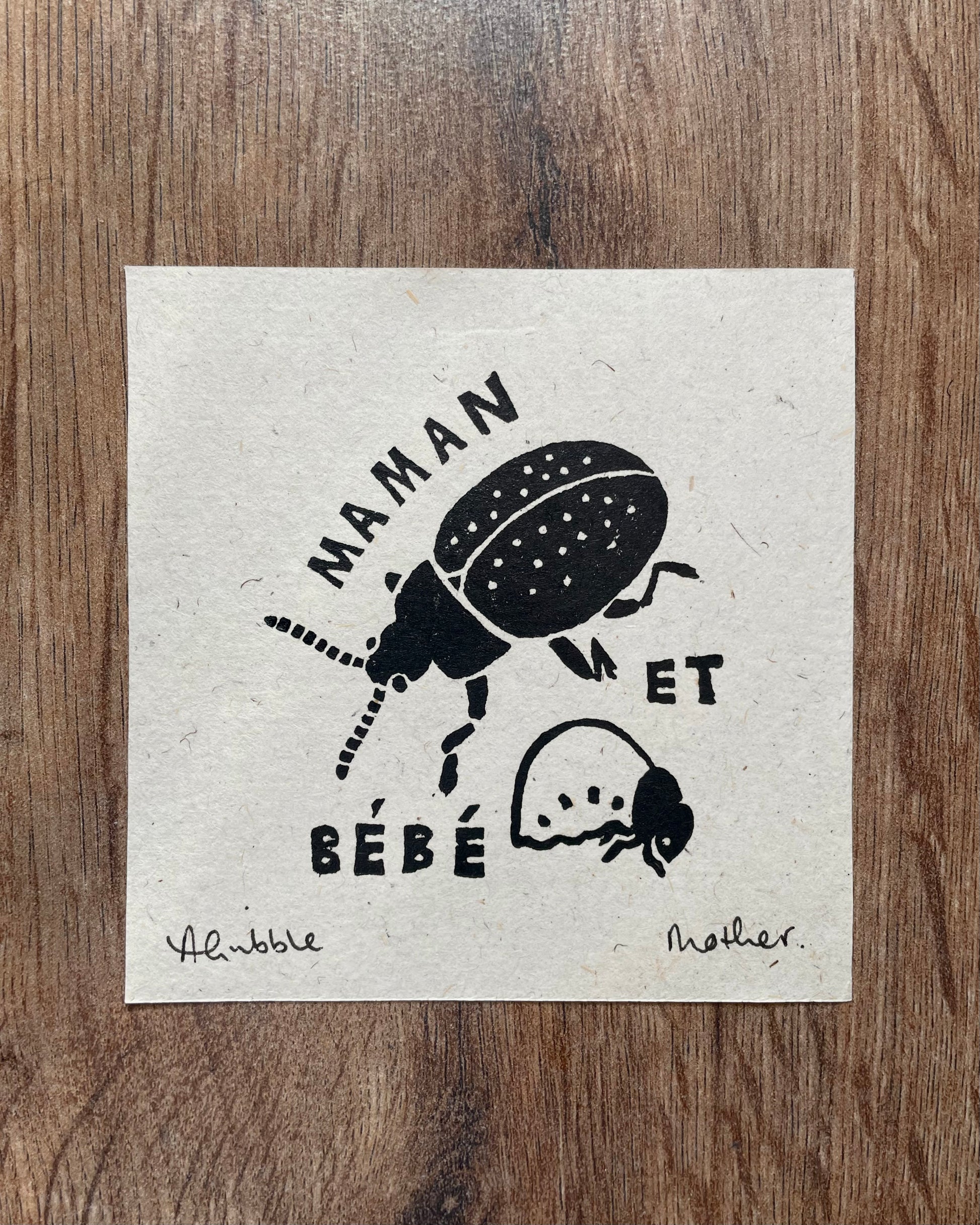 'Mother' is an original, hand-made linocut print which has been designed and printed in West Yorkshire by Alice Gribble.