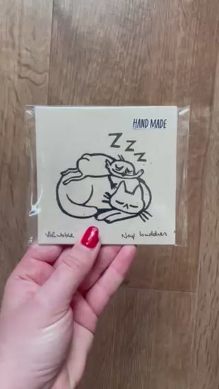 'Nap Buddies' is an original, hand-made linocut print which has been designed and printed in West Yorkshire by Alice Gribble.